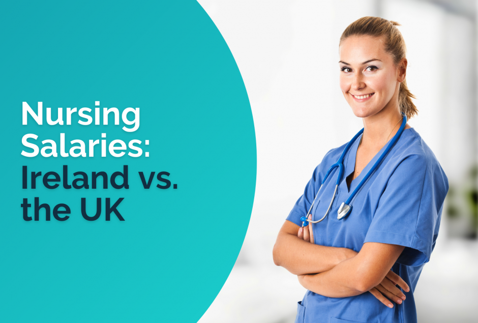The starting rate of pay for a nurse in the UK is £24,907 (approx. €28,400), in comparison to the starting salary for a nurse in Ireland which is €31,109.